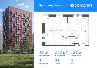Строим кварталы для жизни с заботой о будущем. Предлагается 2-комнатная квартира комфорт-класса 51,98 кв.м в корпусе 21 на 2 этаже, в ЖК "Пригород Лесное"