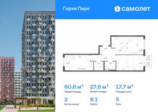 Строим кварталы для жизни с заботой о будущем. Предлагается 2-комнатная квартира комфорт-класса 60,6 кв.м в корпусе 8.1 на 5 этаже, в ЖК "Горки Парк"
