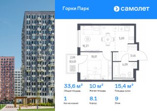 Строим кварталы для жизни с заботой о будущем. Предлагается 1-комнатная квартира комфорт-класса 33,55 кв.м в корпусе 8.1 на 9 этаже, в ЖК "Горки Парк"