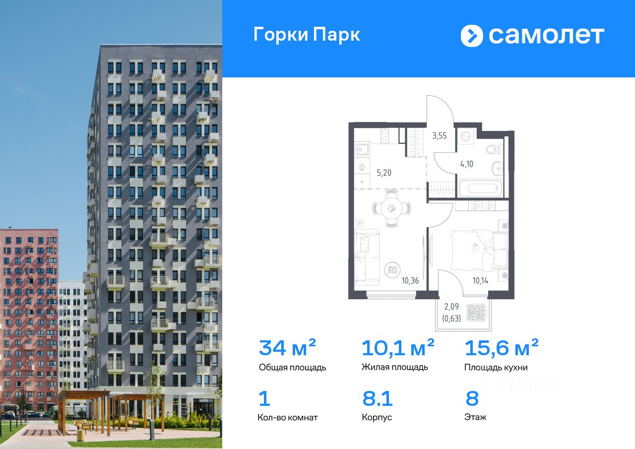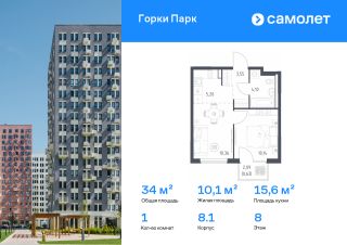 Строим кварталы для жизни с заботой о будущем. Предлагается 1-комнатная квартира комфорт-класса 33,98 кв.м в корпусе 8.1 на 8 этаже, в ЖК "Горки Парк"