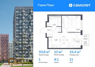 Строим кварталы для жизни с заботой о будущем. Предлагается 1-комнатная квартира комфорт-класса 33,55 кв.м в корпусе 8.1 на 11 этаже, в ЖК "Горки Парк"