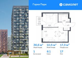 Строим кварталы для жизни с заботой о будущем. Предлагается 1-комнатная квартира комфорт-класса 36,58 кв.м в корпусе 8.1 на 17 этаже, в ЖК "Горки Парк"