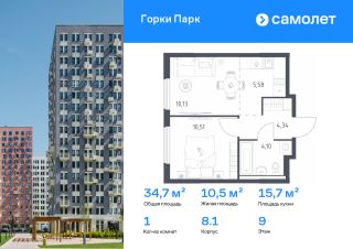 Строим кварталы для жизни с заботой о будущем. Предлагается 1-комнатная квартира комфорт-класса 34,66 кв.м в корпусе 8.1 на 9 этаже, в ЖК "Горки Парк"