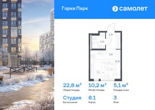 Строим кварталы для жизни с заботой о будущем. Предлагается квартира студия комфорт-класса 22,83 кв.м в корпусе 8.1 на 3 этаже, в ЖК "Горки Парк"
