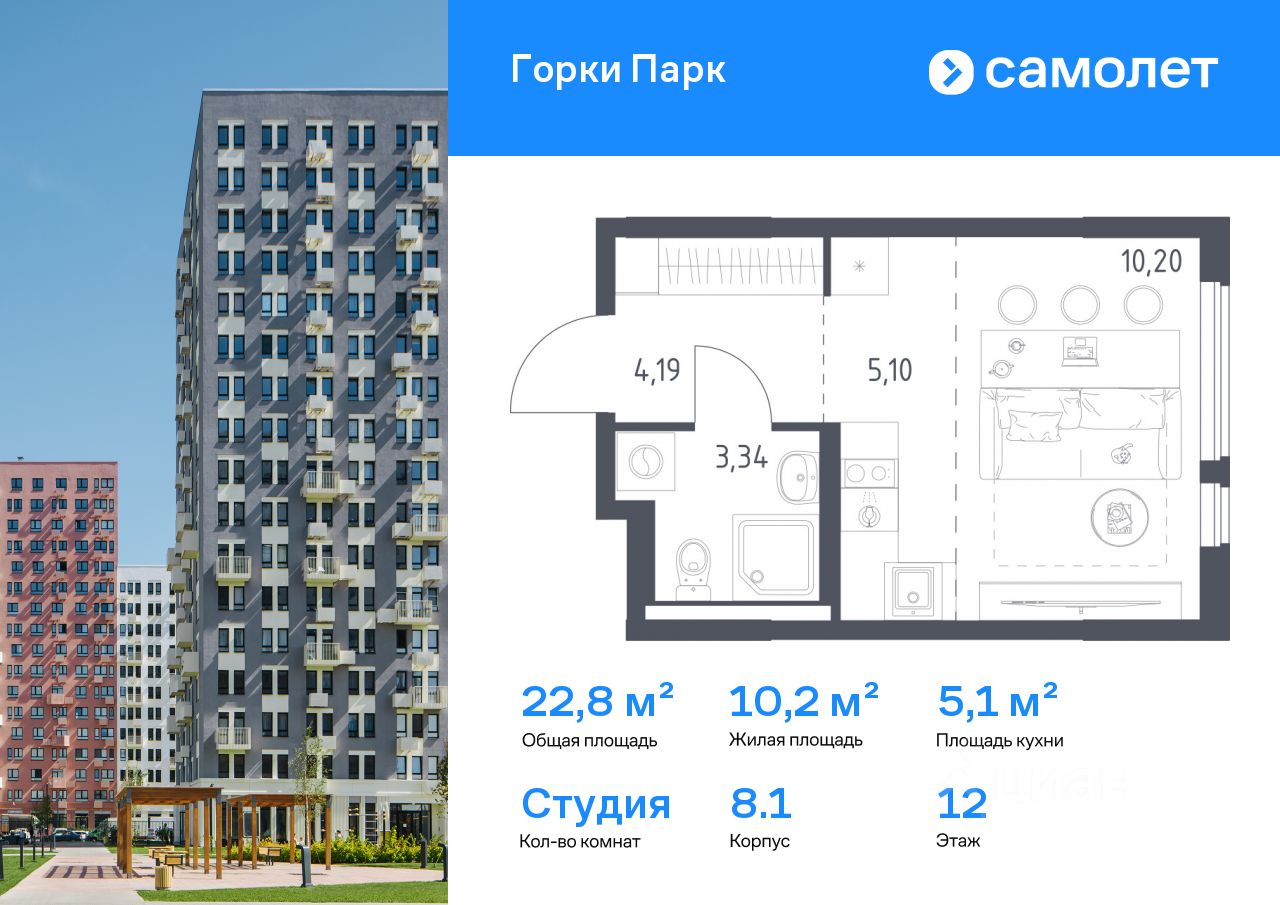 Строим кварталы для жизни с заботой о будущем. Предлагается квартира студия комфорт-класса 22,83 кв.м в корпусе 8.1 на 12 этаже, в ЖК "Горки Парк"
