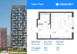 Строим кварталы для жизни с заботой о будущем. Предлагается квартира студия комфорт-класса 26,38 кв.м в корпусе 8.1 на 15 этаже, в ЖК "Горки Парк"