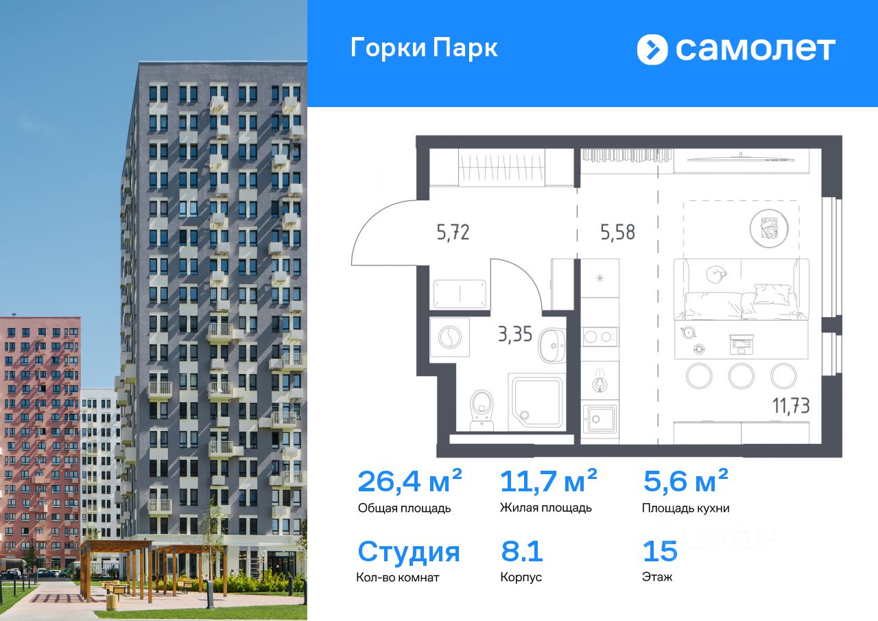 Строим кварталы для жизни с заботой о будущем. Предлагается квартира студия комфорт-класса 26,38 кв.м в корпусе 8.1 на 15 этаже, в ЖК "Горки Парк"