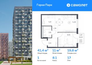 Строим кварталы для жизни с заботой о будущем. Предлагается 1-комнатная квартира комфорт-класса 41,44 кв.м в корпусе 8.1 на 17 этаже, в ЖК "Горки Парк"