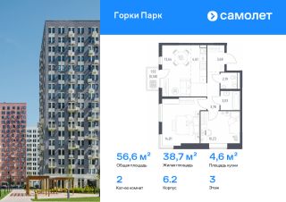 Строим кварталы для жизни с заботой о будущем. Предлагается 2-комнатная квартира комфорт-класса 56,55 кв.м в корпусе 6.2 на 3 этаже, в ЖК "Горки Парк"