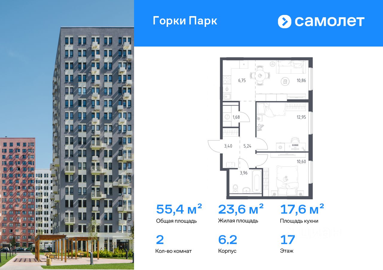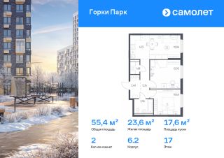 Строим кварталы для жизни с заботой о будущем. Предлагается 2-комнатная квартира комфорт-класса 55,44 кв.м в корпусе 6.2 на 17 этаже, в ЖК "Горки Парк"