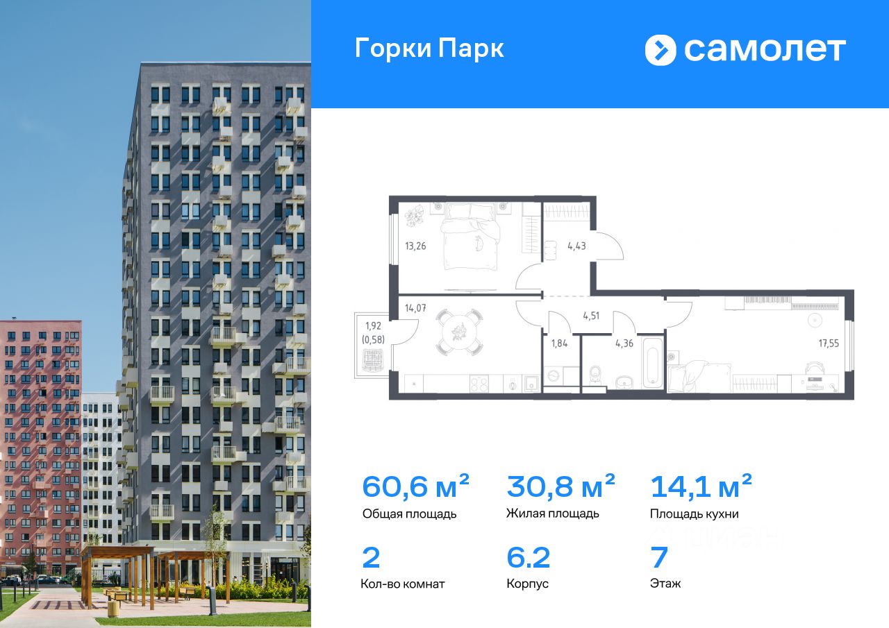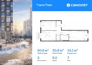 Строим кварталы для жизни с заботой о будущем. Предлагается 2-комнатная квартира комфорт-класса 60,6 кв.м в корпусе 6.2 на 7 этаже, в ЖК "Горки Парк"