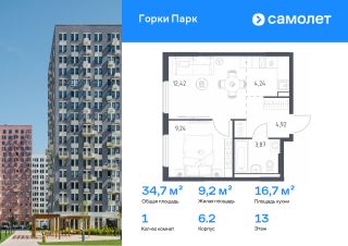 Строим кварталы для жизни с заботой о будущем. Предлагается 1-комнатная квартира комфорт-класса 34,69 кв.м в корпусе 6.2 на 13 этаже, в ЖК "Горки Парк"