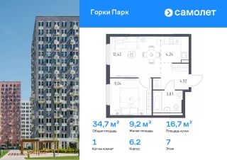 Строим кварталы для жизни с заботой о будущем. Предлагается 1-комнатная квартира комфорт-класса 34,69 кв.м в корпусе 6.2 на 7 этаже, в ЖК "Горки Парк"