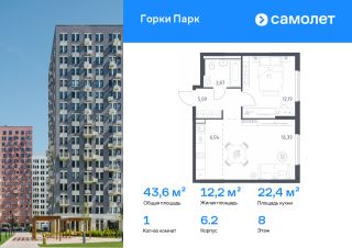 Строим кварталы для жизни с заботой о будущем. Предлагается 1-комнатная квартира комфорт-класса 43,58 кв.м в корпусе 6.2 на 8 этаже, в ЖК "Горки Парк"