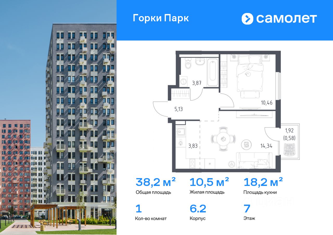 Строим кварталы для жизни с заботой о будущем. Предлагается 1-комнатная квартира комфорт-класса 38,21 кв.м в корпусе 6.2 на 7 этаже, в ЖК "Горки Парк"