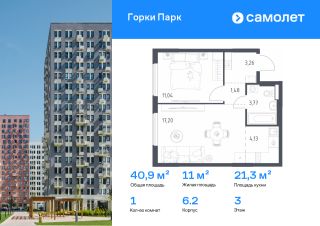 Строим кварталы для жизни с заботой о будущем. Предлагается 1-комнатная квартира комфорт-класса 40,88 кв.м в корпусе 6.2 на 3 этаже, в ЖК "Горки Парк"