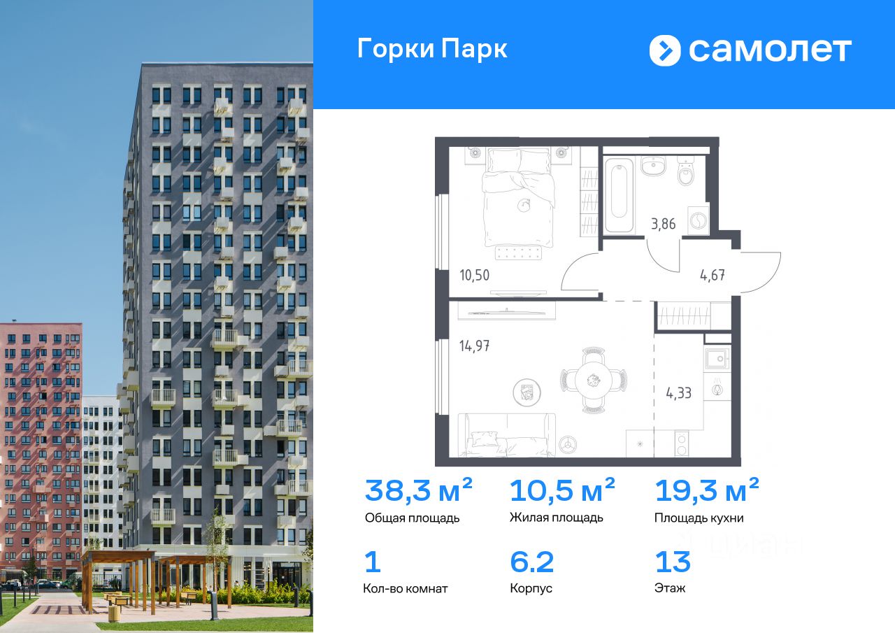 Строим кварталы для жизни с заботой о будущем. Предлагается 1-комнатная квартира комфорт-класса 38,33 кв.м в корпусе 6.2 на 13 этаже, в ЖК "Горки Парк"