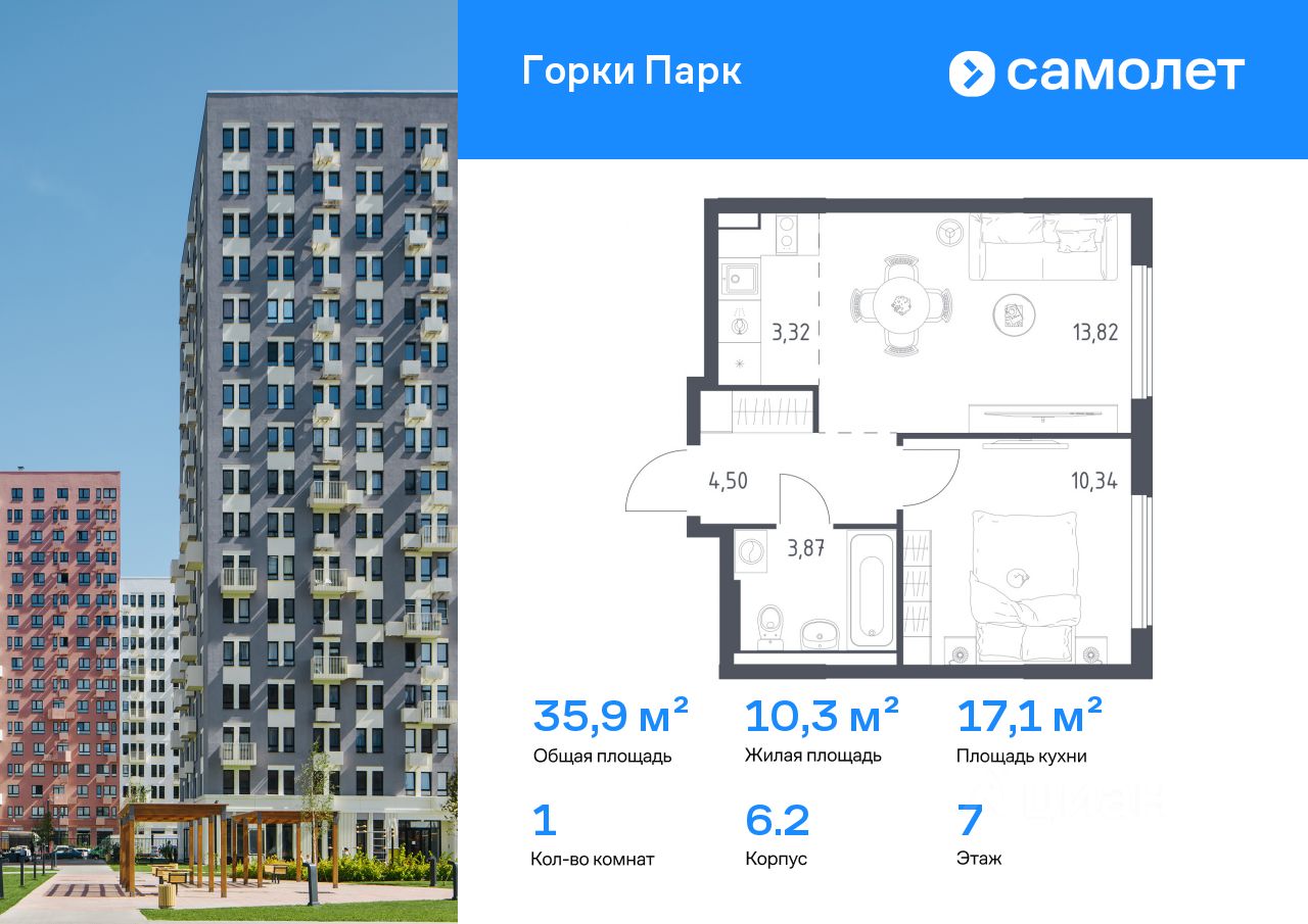 Строим кварталы для жизни с заботой о будущем. Предлагается 1-комнатная квартира комфорт-класса 35,85 кв.м в корпусе 6.2 на 7 этаже, в ЖК "Горки Парк"