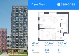 Строим кварталы для жизни с заботой о будущем. Предлагается 1-комнатная квартира комфорт-класса 40,98 кв.м в корпусе 6.2 на 5 этаже, в ЖК "Горки Парк"