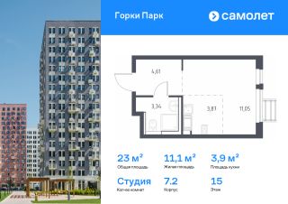 Строим кварталы для жизни с заботой о будущем. Предлагается квартира студия комфорт-класса 23 кв.м в корпусе 7.2 на 15 этаже, в ЖК "Горки Парк"