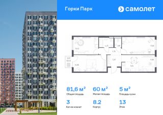 Строим кварталы для жизни с заботой о будущем. Предлагается 3-комнатная квартира комфорт-класса 81,61 кв.м в корпусе 8.2 на 13 этаже, в ЖК "Горки Парк"