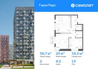 Строим кварталы для жизни с заботой о будущем. Предлагается 2-комнатная квартира комфорт-класса 56,7 кв.м в корпусе 8.2 на 13 этаже, в ЖК "Горки Парк"