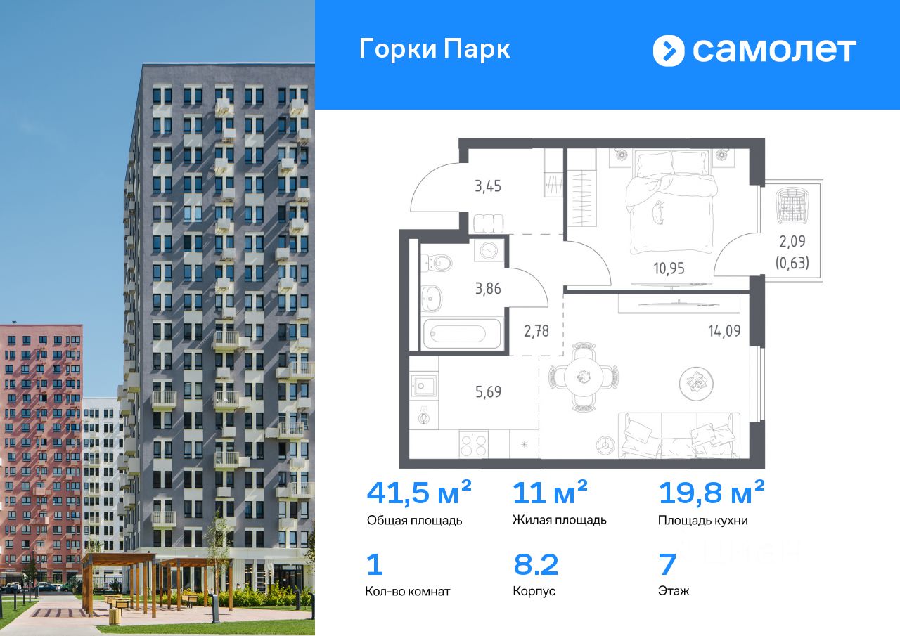 Строим кварталы для жизни с заботой о будущем. Предлагается 1-комнатная квартира комфорт-класса 41,45 кв.м в корпусе 8.2 на 7 этаже, в ЖК "Горки Парк"