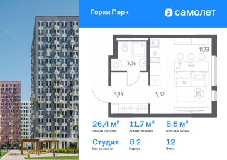 Строим кварталы для жизни с заботой о будущем. Предлагается квартира студия комфорт-класса 26,39 кв.м в корпусе 8.2 на 12 этаже, в ЖК "Горки Парк"