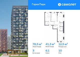 Строим кварталы для жизни с заботой о будущем. Предлагается 3-комнатная квартира комфорт-класса 78,48 кв.м в корпусе 6.1 на 10 этаже, в ЖК "Горки Парк"