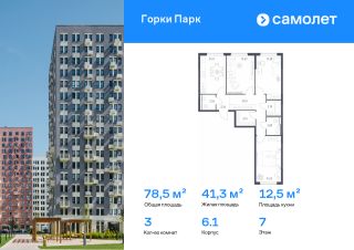 Строим кварталы для жизни с заботой о будущем. Предлагается 3-комнатная квартира комфорт-класса 78,52 кв.м в корпусе 6.1 на 7 этаже, в ЖК "Горки Парк"
