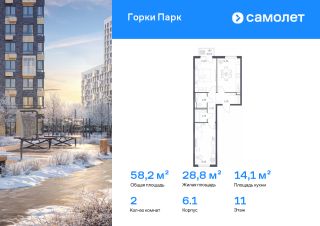 Строим кварталы для жизни с заботой о будущем. Предлагается 2-комнатная квартира комфорт-класса 58,21 кв.м в корпусе 6.1 на 11 этаже, в ЖК "Горки Парк"