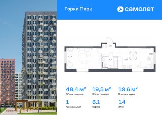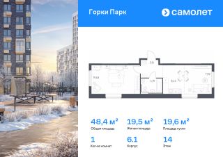 Строим кварталы для жизни с заботой о будущем. Предлагается 1-комнатная квартира комфорт-класса 48,38 кв.м в корпусе 6.1 на 14 этаже, в ЖК "Горки Парк"
