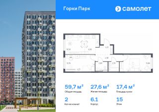 Строим кварталы для жизни с заботой о будущем. Предлагается 2-комнатная квартира комфорт-класса 59,73 кв.м в корпусе 6.1 на 15 этаже, в ЖК "Горки Парк"