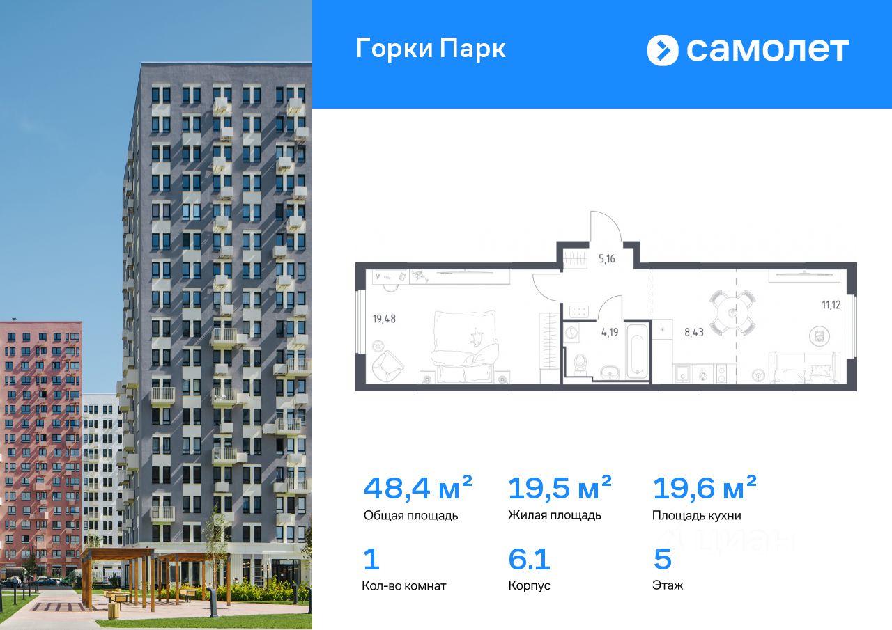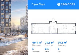 Строим кварталы для жизни с заботой о будущем. Предлагается 1-комнатная квартира комфорт-класса 48,38 кв.м в корпусе 6.1 на 5 этаже, в ЖК "Горки Парк"