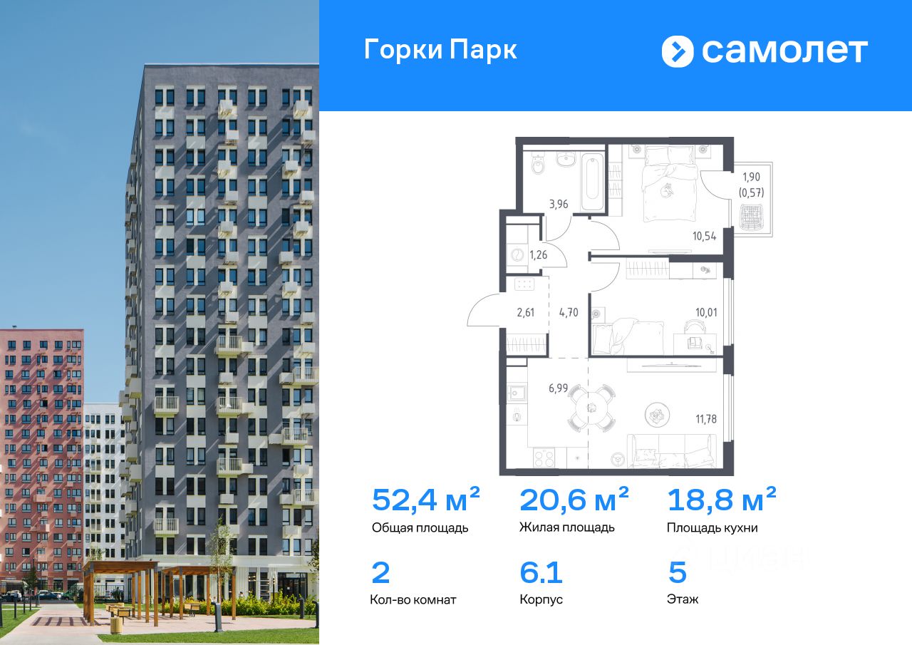Строим кварталы для жизни с заботой о будущем. Предлагается 2-комнатная квартира комфорт-класса 52,42 кв.м в корпусе 6.1 на 5 этаже, в ЖК "Горки Парк"