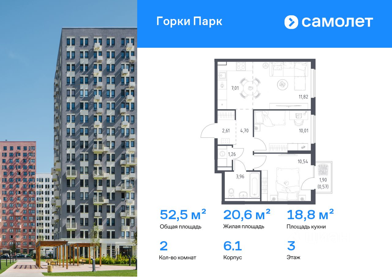 Строим кварталы для жизни с заботой о будущем. Предлагается 2-комнатная квартира комфорт-класса 52,48 кв.м в корпусе 6.1 на 3 этаже, в ЖК "Горки Парк"