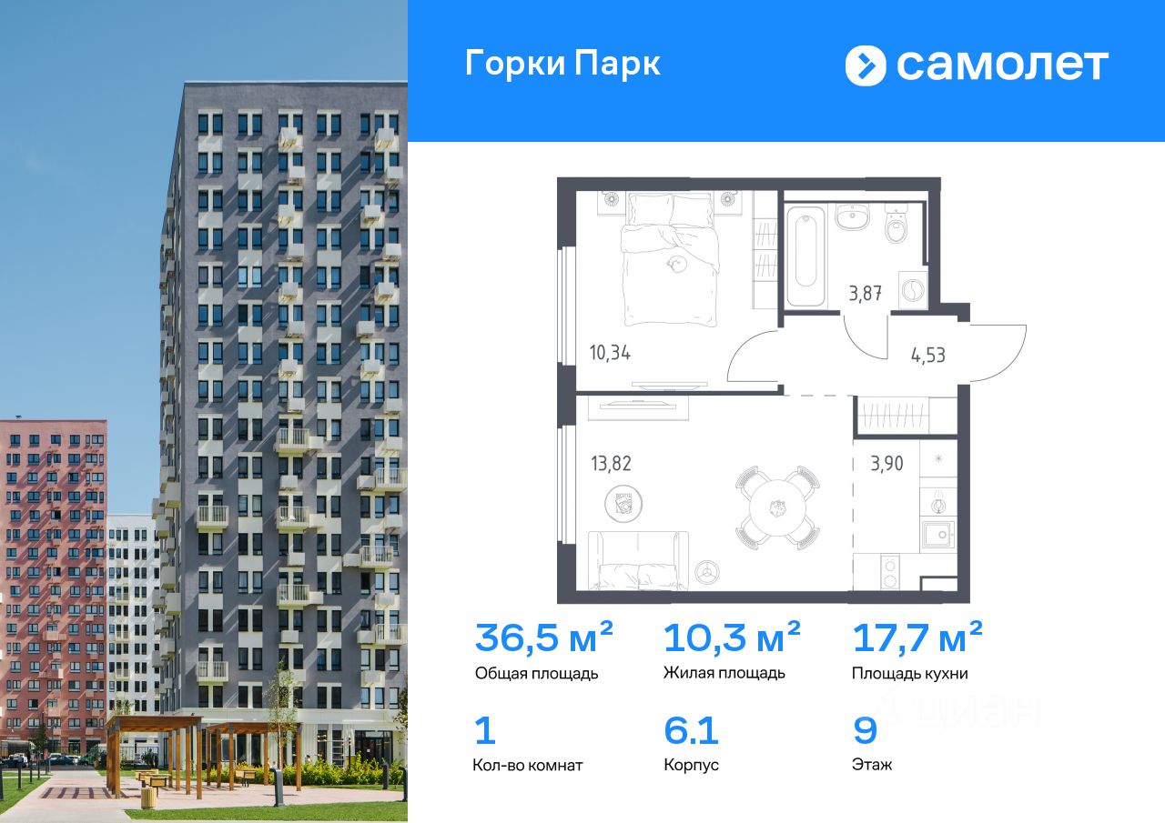 Строим кварталы для жизни с заботой о будущем. Предлагается 1-комнатная квартира комфорт-класса 36,46 кв.м в корпусе 6.1 на 9 этаже, в ЖК "Горки Парк"