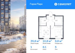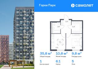 Строим кварталы для жизни с заботой о будущем. Предлагается 1-комнатная квартира комфорт-класса 35,83 кв.м в корпусе 6.1 на 5 этаже, в ЖК "Горки Парк"