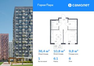Строим кварталы для жизни с заботой о будущем. Предлагается 1-комнатная квартира комфорт-класса 36,4 кв.м в корпусе 6.1 на 6 этаже, в ЖК "Горки Парк"