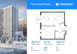 Строим кварталы для жизни с заботой о будущем. Предлагается 1-комнатная квартира комфорт-класса 38,35 кв.м в корпусе 18 на 5 этаже, в ЖК "Пригород Лесное"