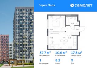 Строим кварталы для жизни с заботой о будущем. Предлагается 1-комнатная квартира комфорт-класса 37,7 кв.м в корпусе 8.2 на 5 этаже, в ЖК "Горки Парк"