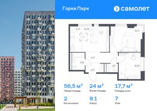 Строим кварталы для жизни с заботой о будущем. Предлагается 2-комнатная квартира комфорт-класса 56,53 кв.м в корпусе 8.1 на 7 этаже, в ЖК "Горки Парк"