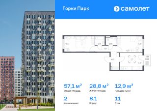 Строим кварталы для жизни с заботой о будущем. Предлагается 2-комнатная квартира комфорт-класса 57,1 кв.м в корпусе 8.1 на 11 этаже, в ЖК "Горки Парк"