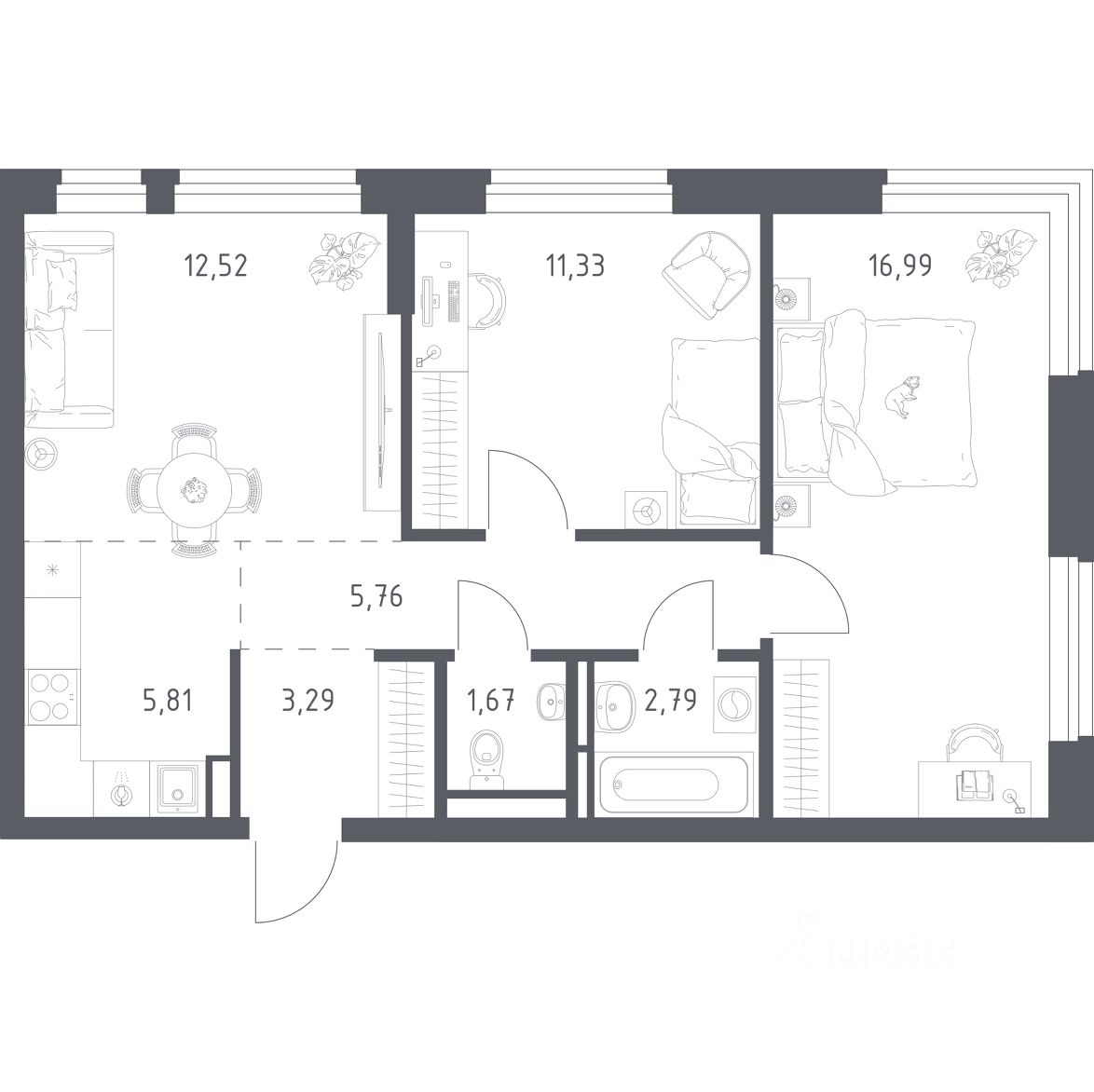 2-комнатная квартира (евро трёшка - кухня-гостинная) комфорт-класса 60,16 кв.м в корпусе 13.1 на 16 этаже, в ЖК "Новое Видное" с видом на поле и лес.