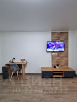 Светлый зал с раскладным диваном (2 спальных места), широким шкафом, рабочим столом и ТВзоной с тумбой и декоративными панелями. Везде сделаны выводы розеток и вывод интернета под телевизор.