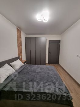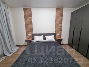 Уютная спальня с большой двуспальной кроватью, подвесными прикроватными тумбами и вместительным шкафом. Предусмотрены выводы электричества и интернета под телевизор.
