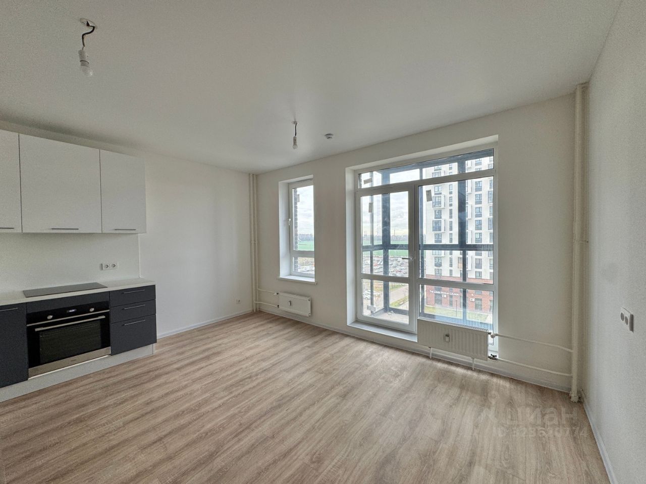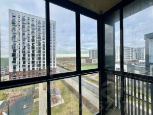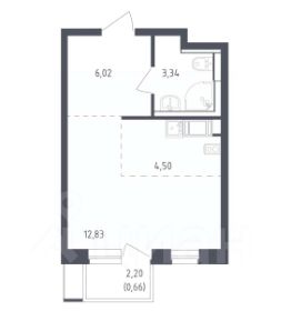 —функциональная планировка: комната-студия с кухонной зоной и выходом на застеклённый балкон с панорамными окнами, совмещённый санузел, прихожая. Площадь по ЕГРН — 26,4 кв.м. без учёта балкона.