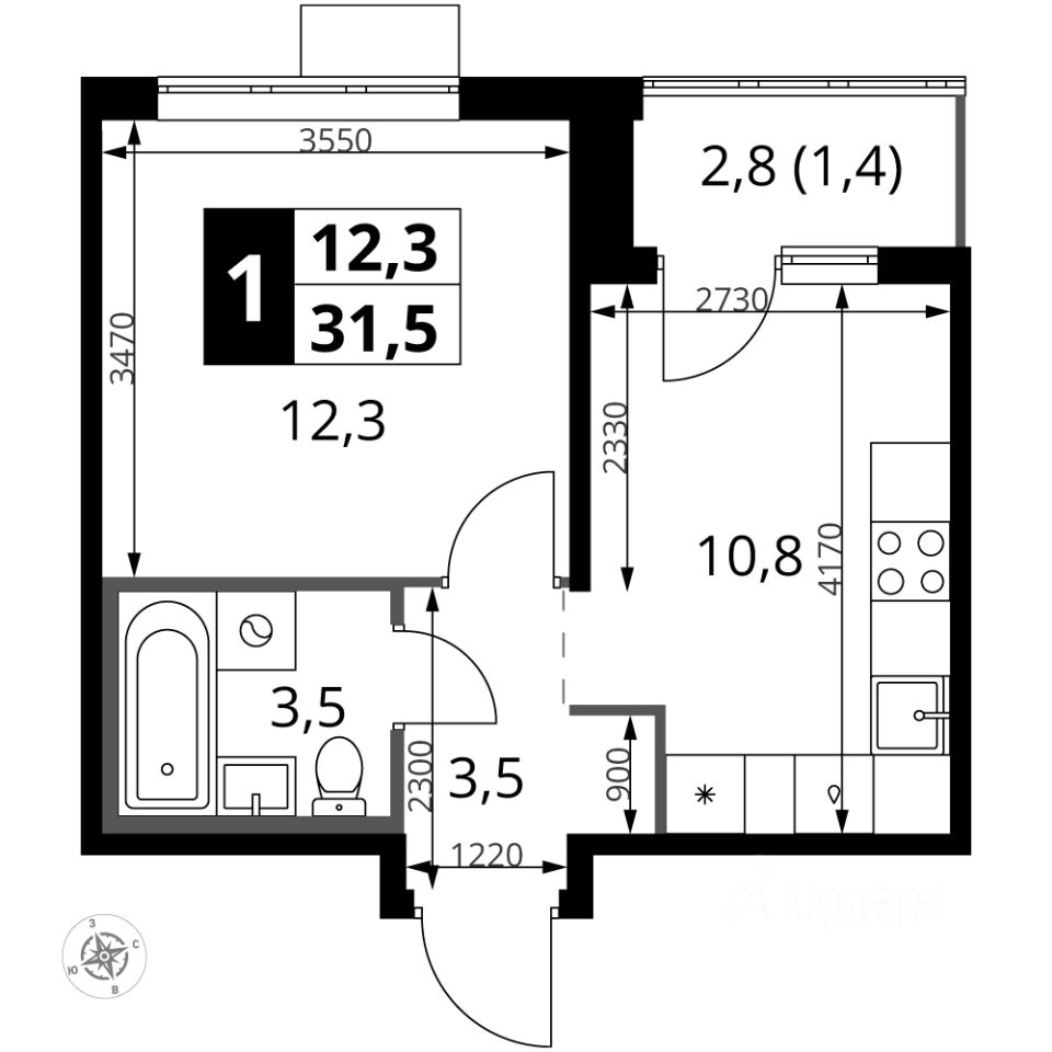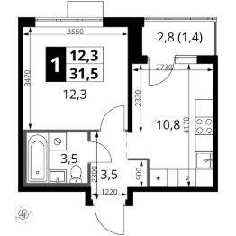 Продаётся 1-к квартира номер 203 общей площадью 31.5 кв.м. на 15-м этаже 24 этажного здания. Чистовая отделка.