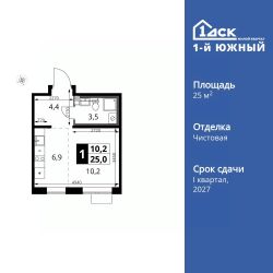 Продаётся квартира-студия номер 222 общей площадью 25 кв.м. на 18-м этаже 24 этажного здания. Чистовая отделка.