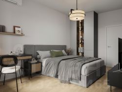 - Мастер-зона с гардеробной. Просторное место для отдыха и удобного хранения вещей.